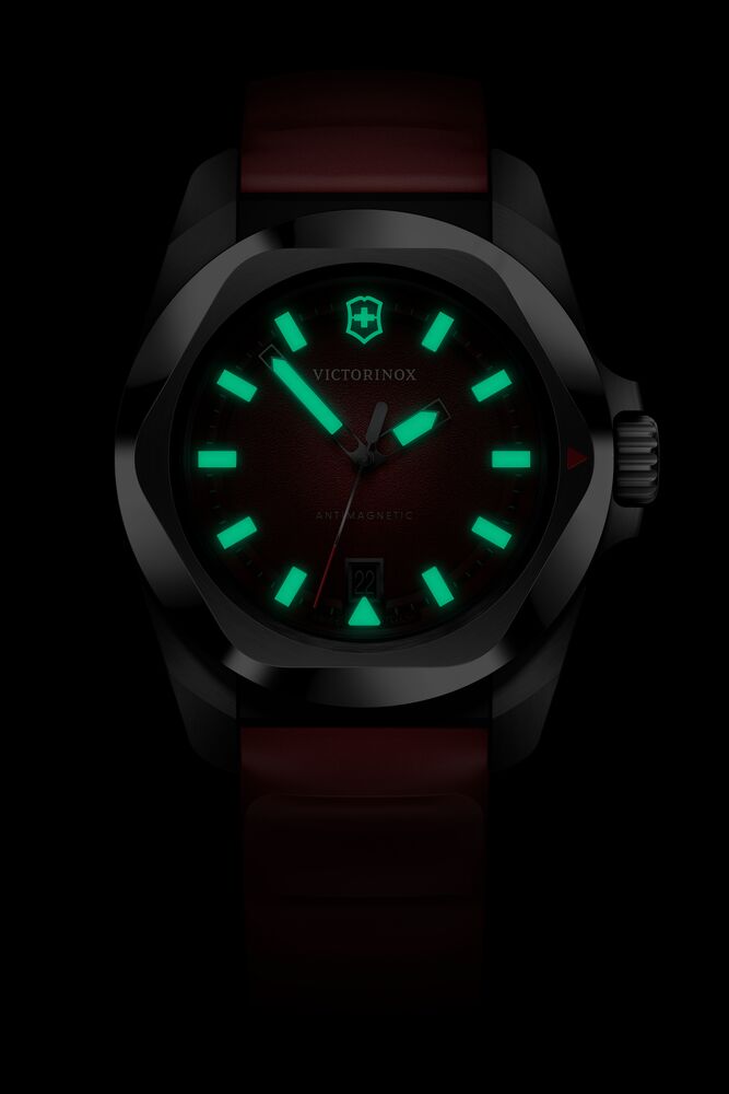 Un tributo moderno al legado de la Swiss Army Knife™: este reloj fusiona historia y vanguardia con una esencia propia de diseño. El reloj I.N.O.X. Cuarzo, diseñado y fabricado en Suiza, combina la precisión con la funcionalidad cotidiana. Presenta una esfera mate con índices en relieve y manecillas luminosas que facilitan la lectura de día y de noche, además de un indicador de fecha a las 6. El bisel cepillado y pulido con tratamiento antirrayaduras añade refinamiento, mientras que el sistema de correa de caucho intercambiable asegura un uso versátil y cómodo.