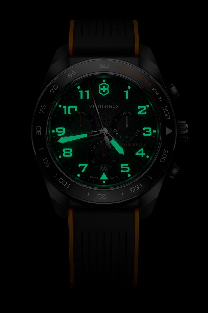 Descubre un reloj con un aspecto optimizado y una funcionalidad incondicional. El Swiss Army Chrono se destaca en todas las capacidades: velocidad de rastreo, distancia, tiempo y precisión exacta. Distinguido por su tecnicidad y confiabilidad, es la elección inteligente para atletas, pilotos o viajeros intrépidos del mundo. Llévalo siempre contigo y supera tus límites.